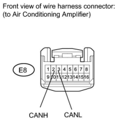HINT: The resistance must be measured after the air conditioning amplifier, main wire connect ECU (ECM and combination meter), CAN No. 1 and No. 2 junction connectors are reconnected.