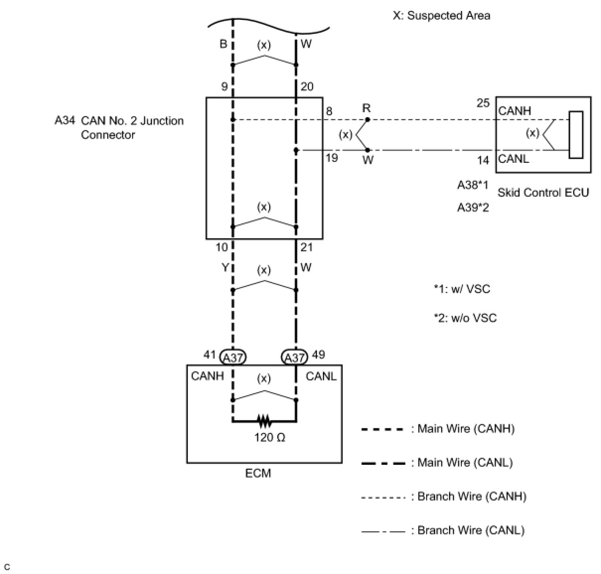 NG -- REPAIR OR REPLACE CAN BUS BRANCH WIRE OR CONNECTOR (CAN NO. 2 JUNCTION CONNECTOR - SKID CONTROL ECU)