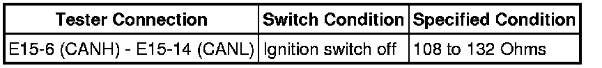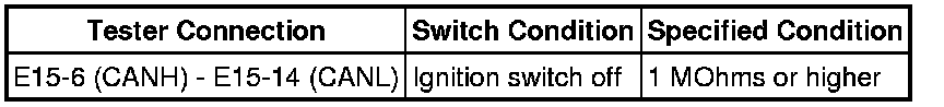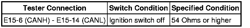 There may be a short circuit in the CAN main wire and/or CAN branch wire when the resistance between terminals 6 (CANH) and 14 (CANL) of the DLC3 is below 54 Ohms.