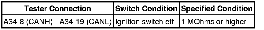 HINT: The resistance must be measured after the center airbag sensor assembly, main wire connect ECU (ECM and combination meter), CAN No. 1 and No. 2 junction connectors are reconnected.