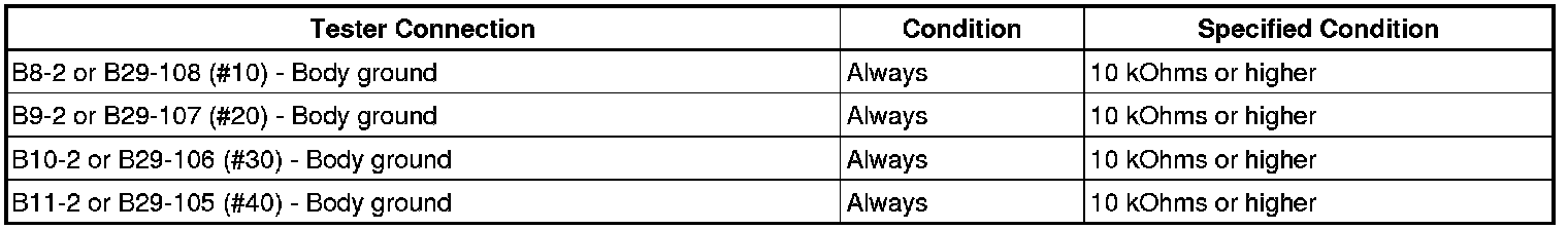 OK -- PROCEED TO NEXT CIRCUIT INSPECTION SHOWN IN PROBLEM SYMPTOMS TABLE