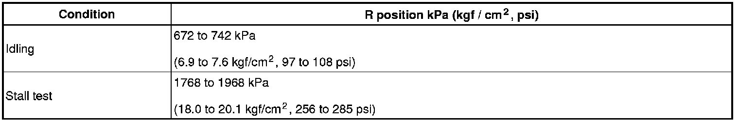 (11) Firmly depress the brake pedal, shift to the D position, depress the accelerator pedal all the way down and check the line pressure while the stall test is performed.
