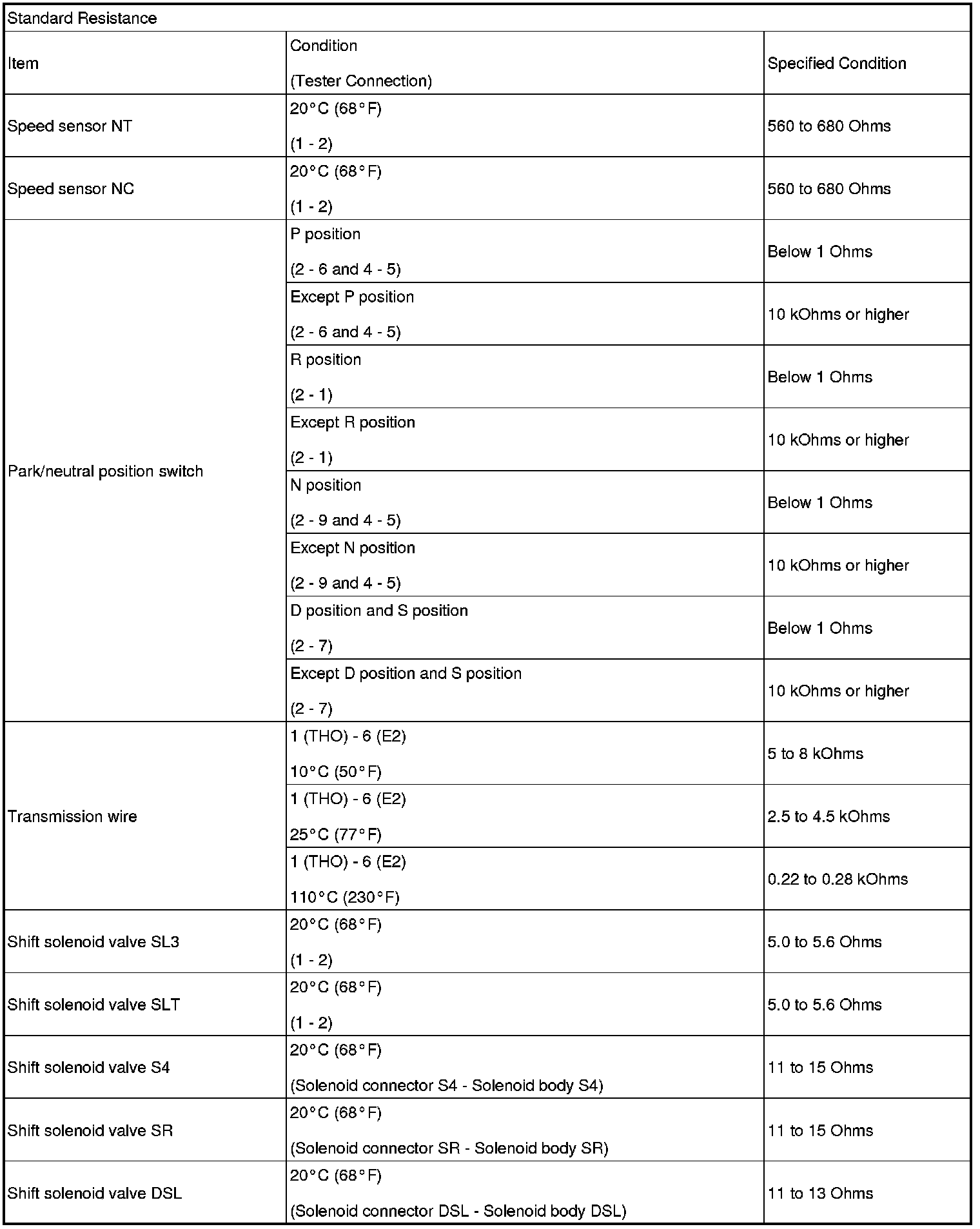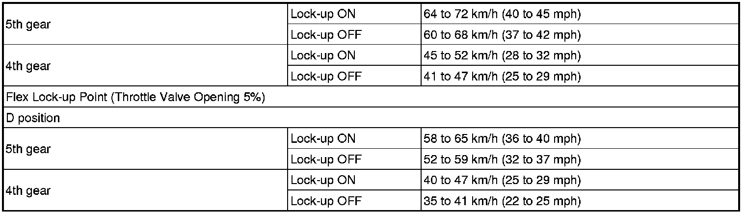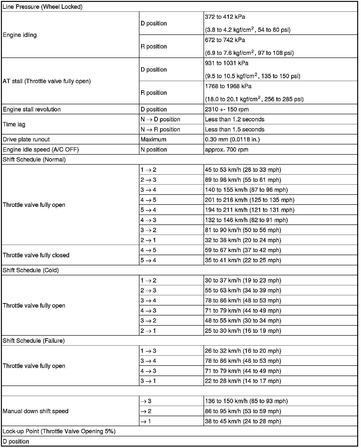 SPECIFICATIONS: U250E AUTOMATIC TRANSMISSION / TRANSAXLE: SERVICE DATA