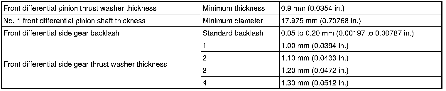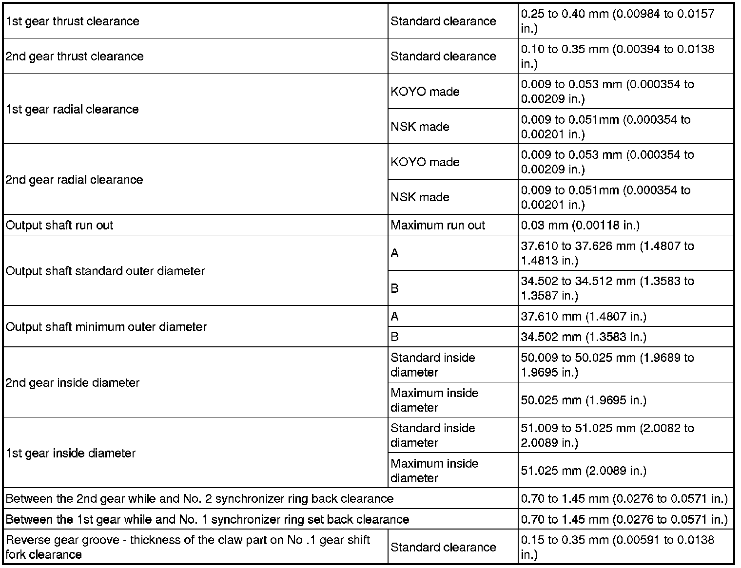 SPECIFICATIONS: E351 MANUAL TRANSMISSION / TRANSAXLE: SERVICE DATA