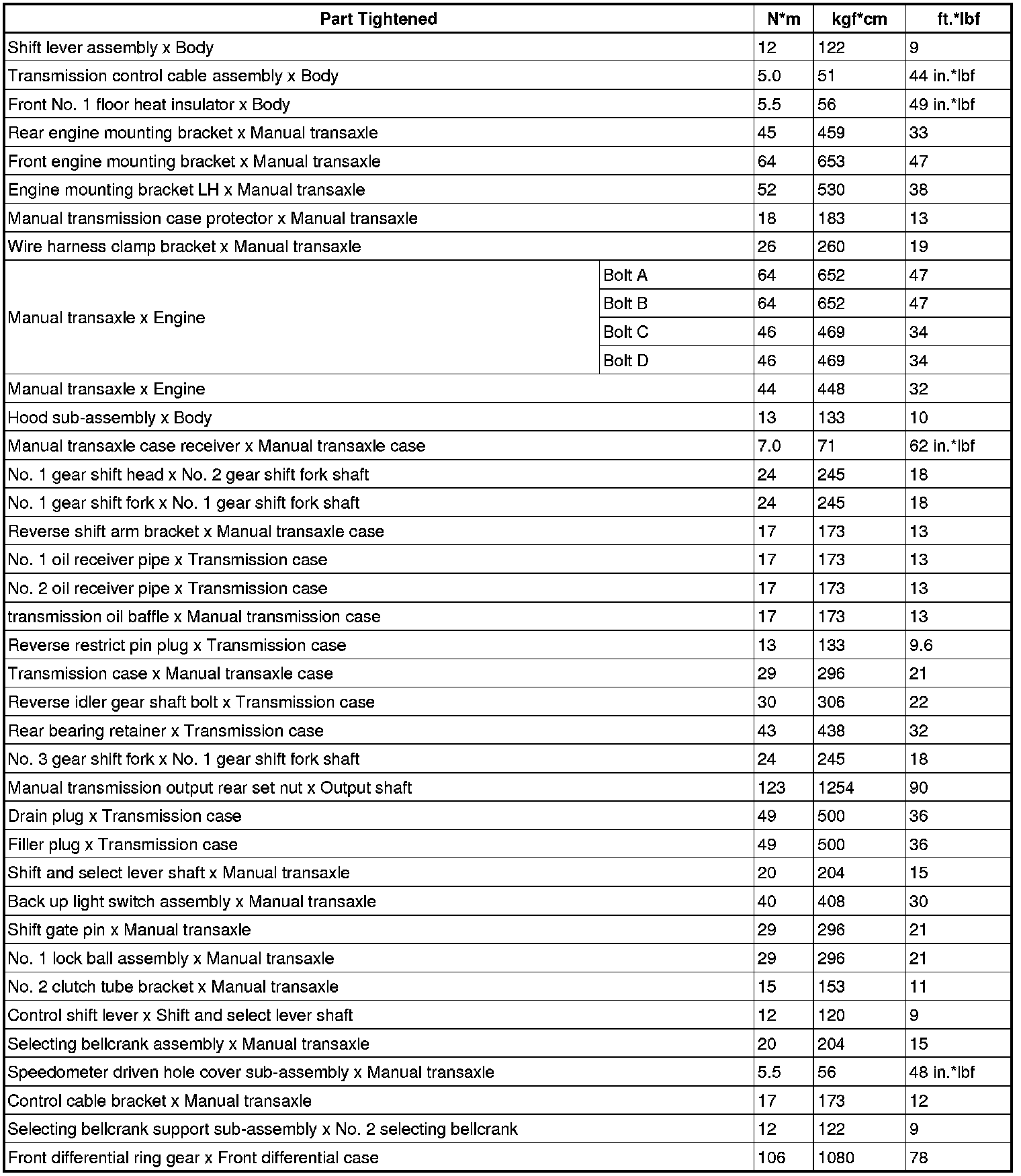 SPECIFICATIONS: E351 MANUAL TRANSMISSION / TRANSAXLE: TORQUE SPECIFICATIONS