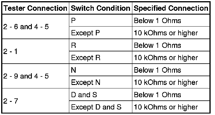 U250E AUTOMATIC TRANSMISSION / TRANSAXLE: PARK / NEUTRAL POSITION SWITCH: INSPECTION