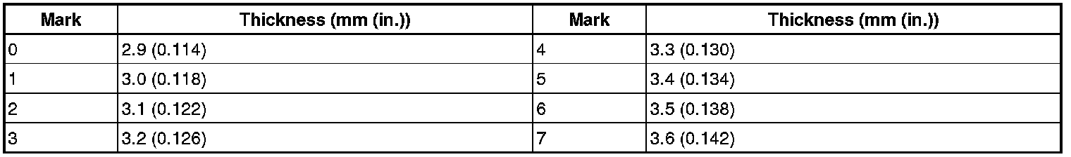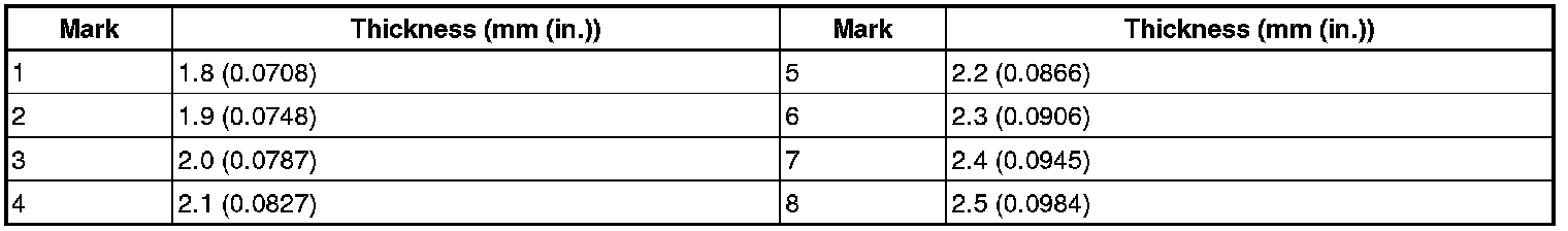 1.51 to 1.71 mm (0.0594 to 0.0673 in.)