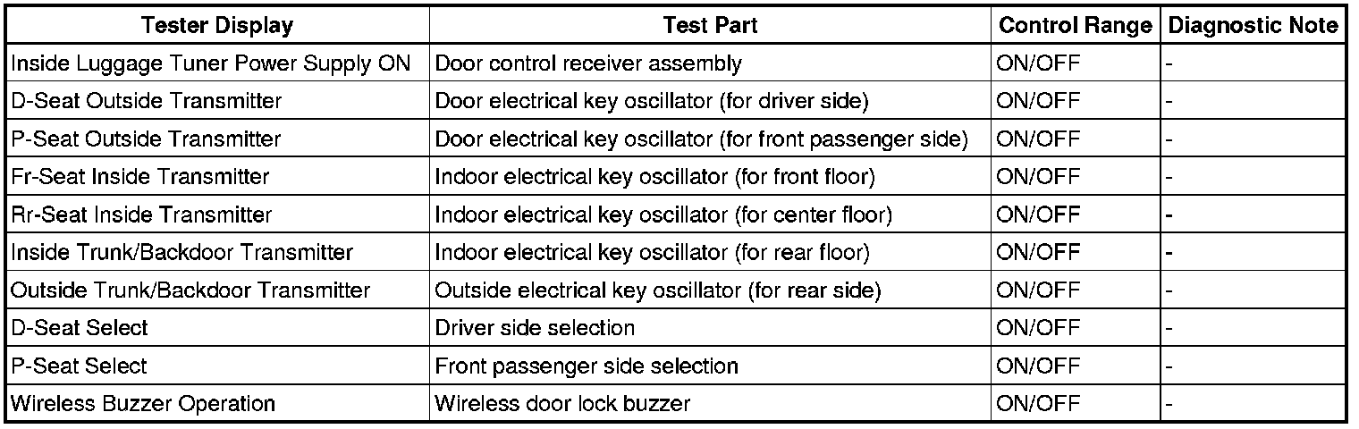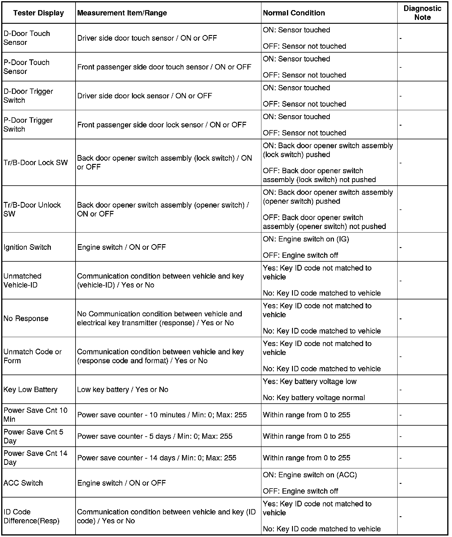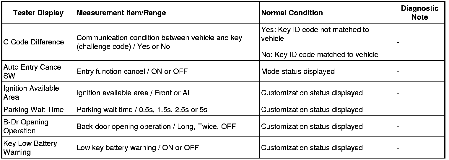 THEFT DETERRENT / KEYLESS ENTRY: SMART KEY SYSTEM (for Entry Function): DATA LIST / ACTIVE TEST