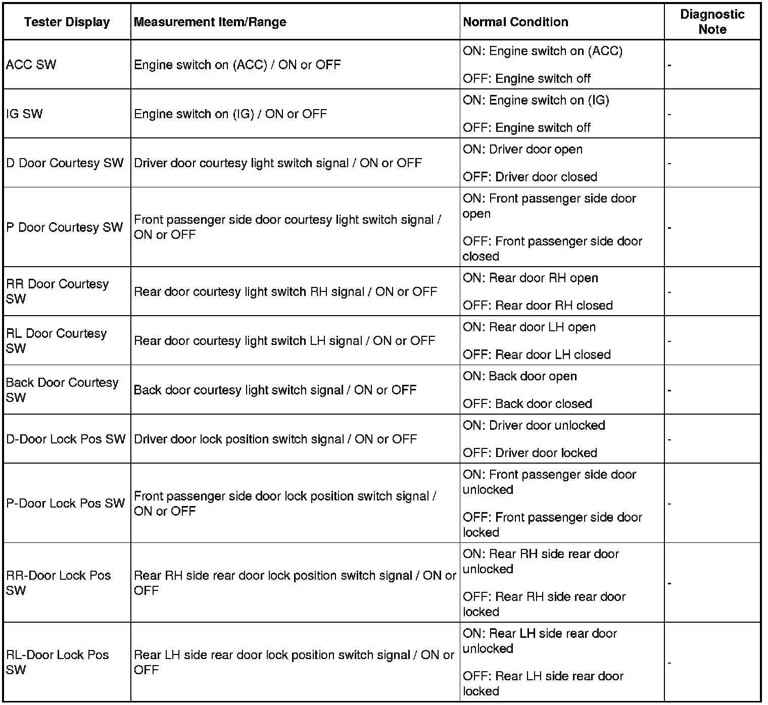 HINT: Using the Techstream to read the Data List allows the values or states of switches, sensors, actuators and other items to be read without removing any parts. This non-intrusive inspection can be very useful because intermittent conditions or signals may be discovered before parts or wiring is disturbed. Reading the Data List information early in troubleshooting is one way to save diagnostic time.