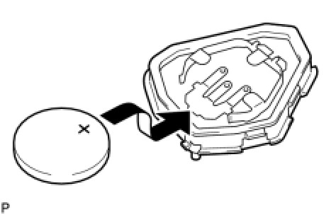 (a) Install a battery (lithium battery: CR2025) with the positive (+) side facing upward, as shown in the illustration.