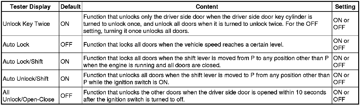 DOOR LOCK: POWER DOOR LOCK CONTROL SYSTEM: CUSTOMIZE PARAMETERS