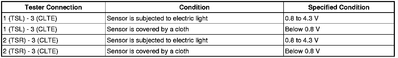 - The connection procedure for using a digital tester such as a TOYOTA electrical tester is shown above. When using an analog tester, connect the positive (+) lead to terminal 6 and the negative (-) lead to terminal 2 (1) of the solar sensor.