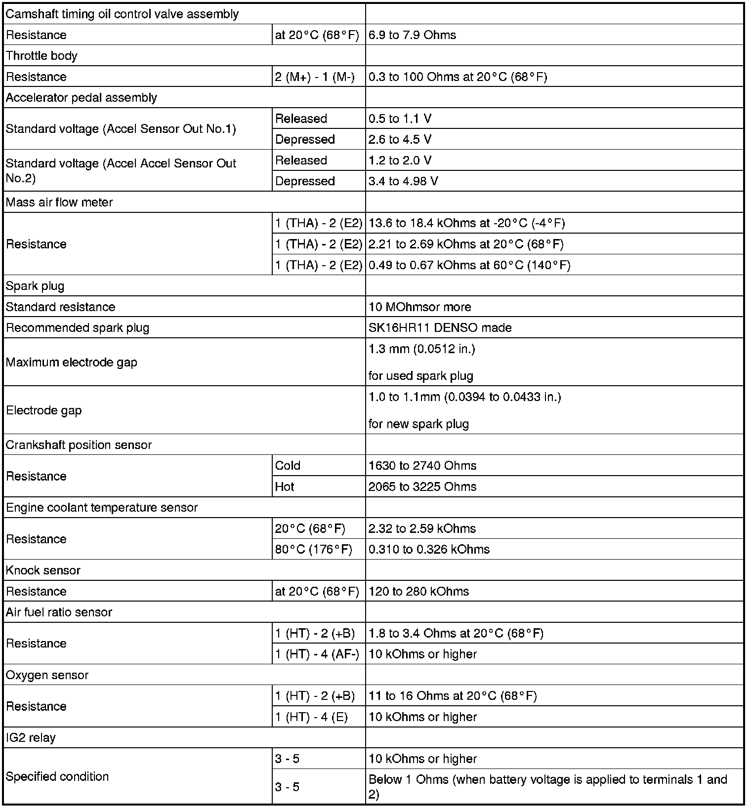 SPECIFICATIONS: 1AR-FE ENGINE CONTROL: SERVICE DATA
