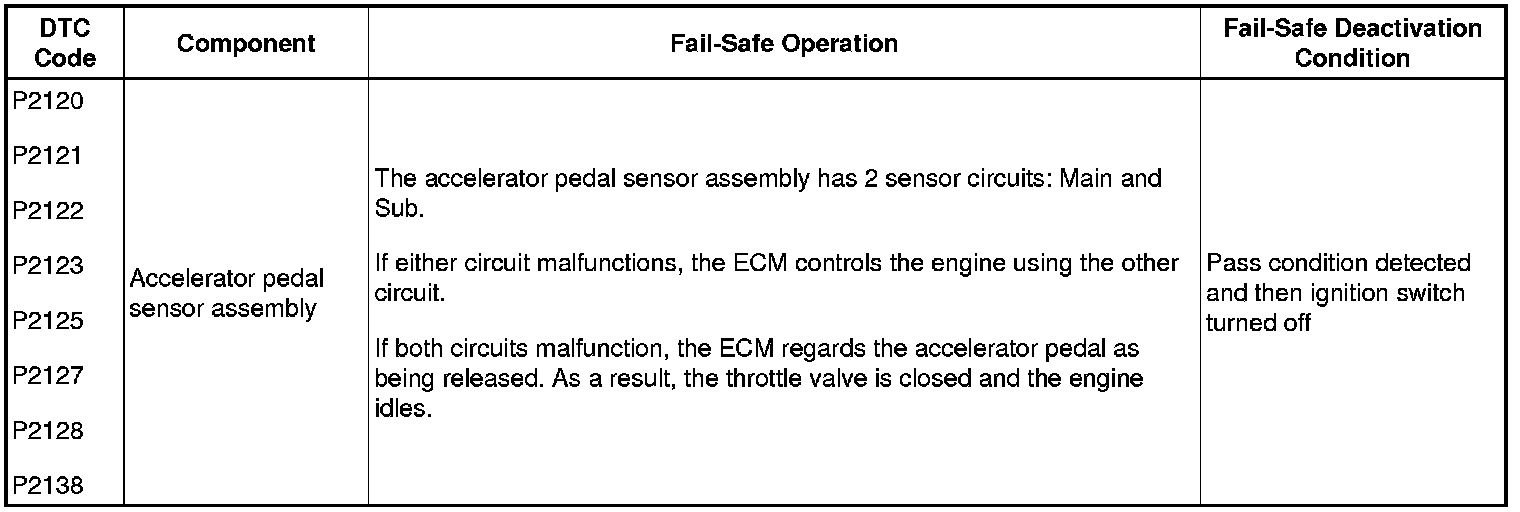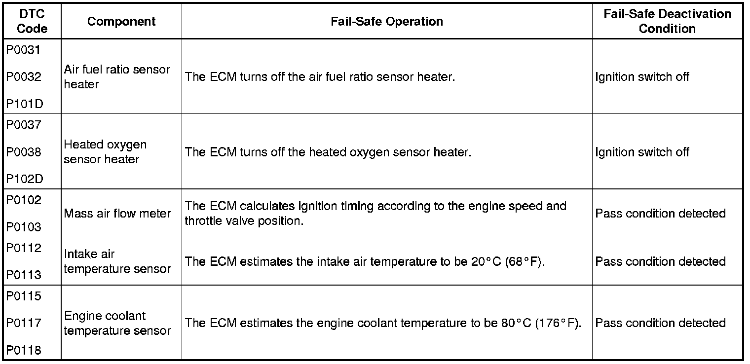 If any of the following DTCs are stored, the ECM enters fail-safe mode to allow the vehicle to be driven temporarily or stops fuel injection.