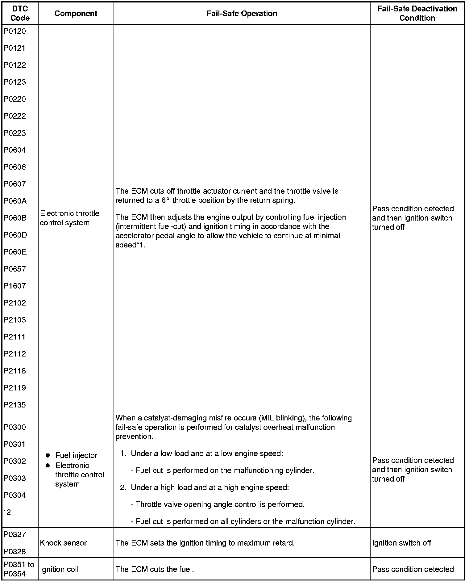 - *2: Misfire-related fail-safe operations occur when catalyst overheat malfunctions occur.