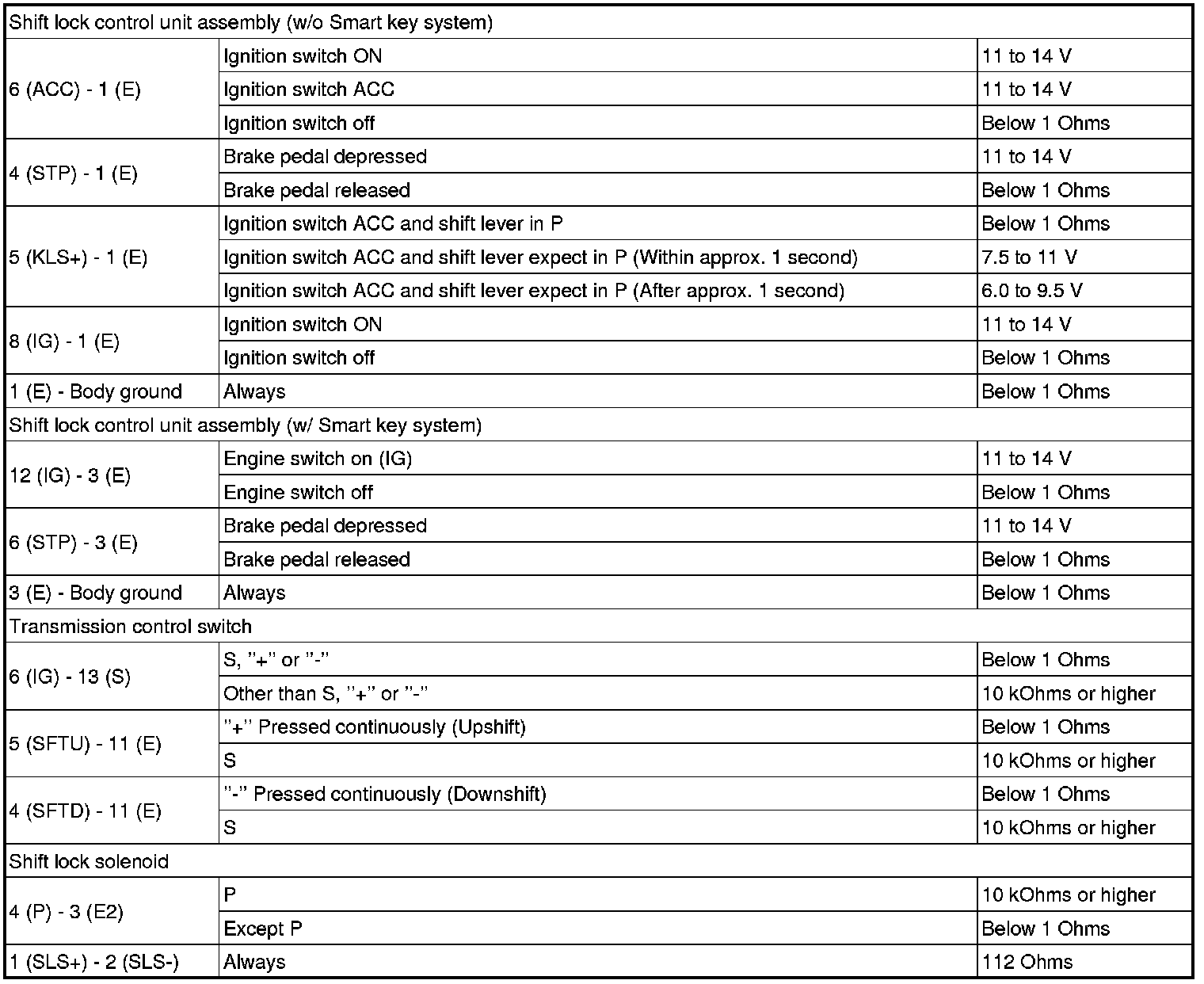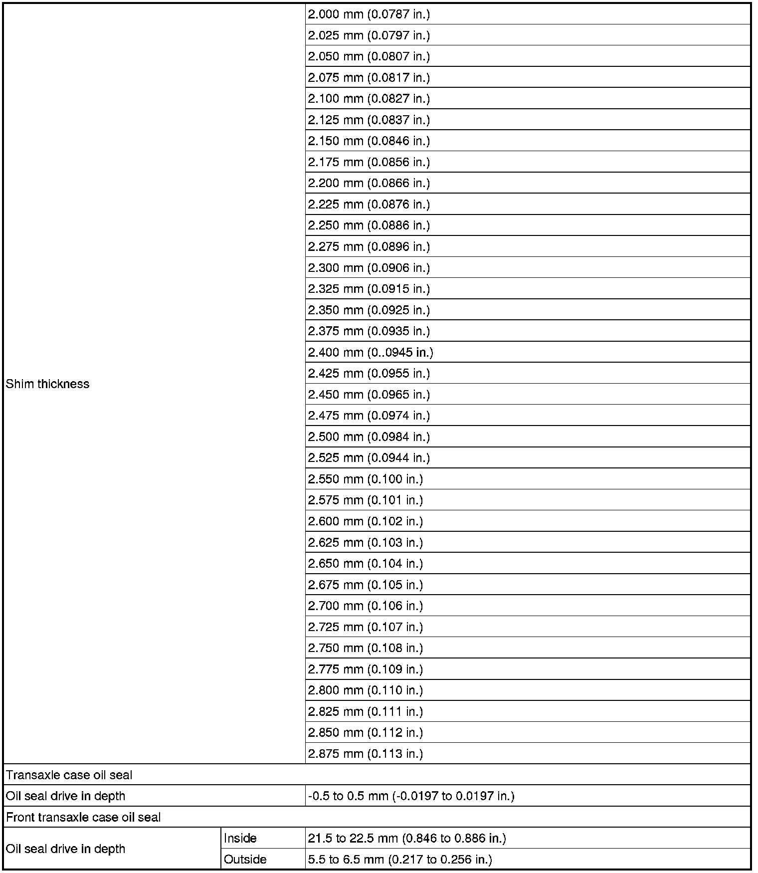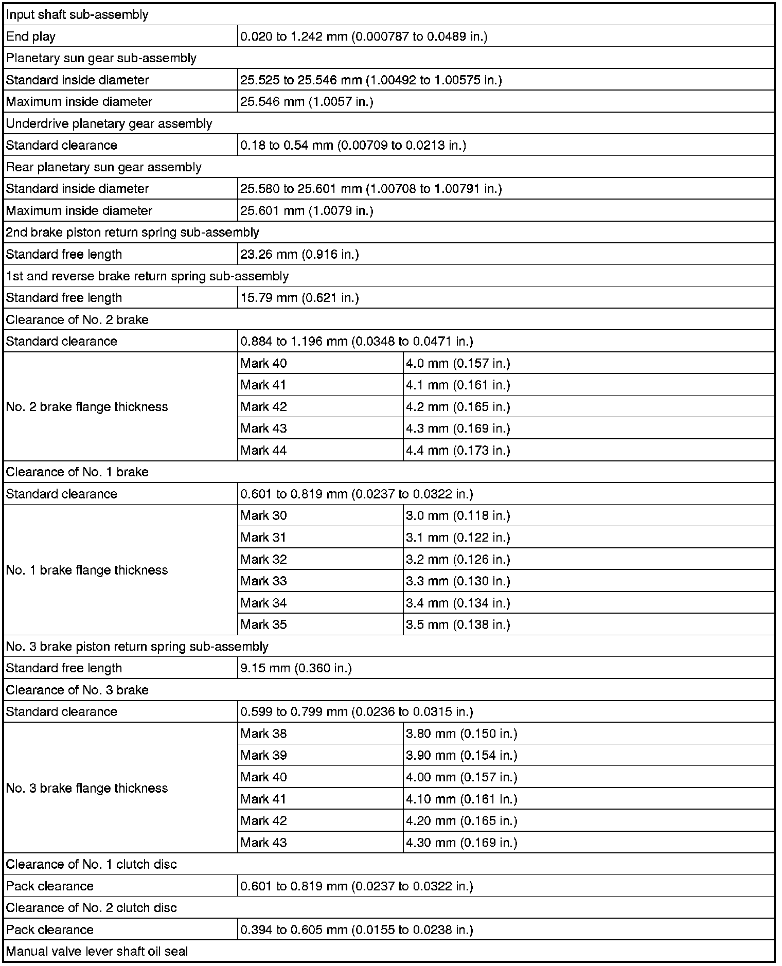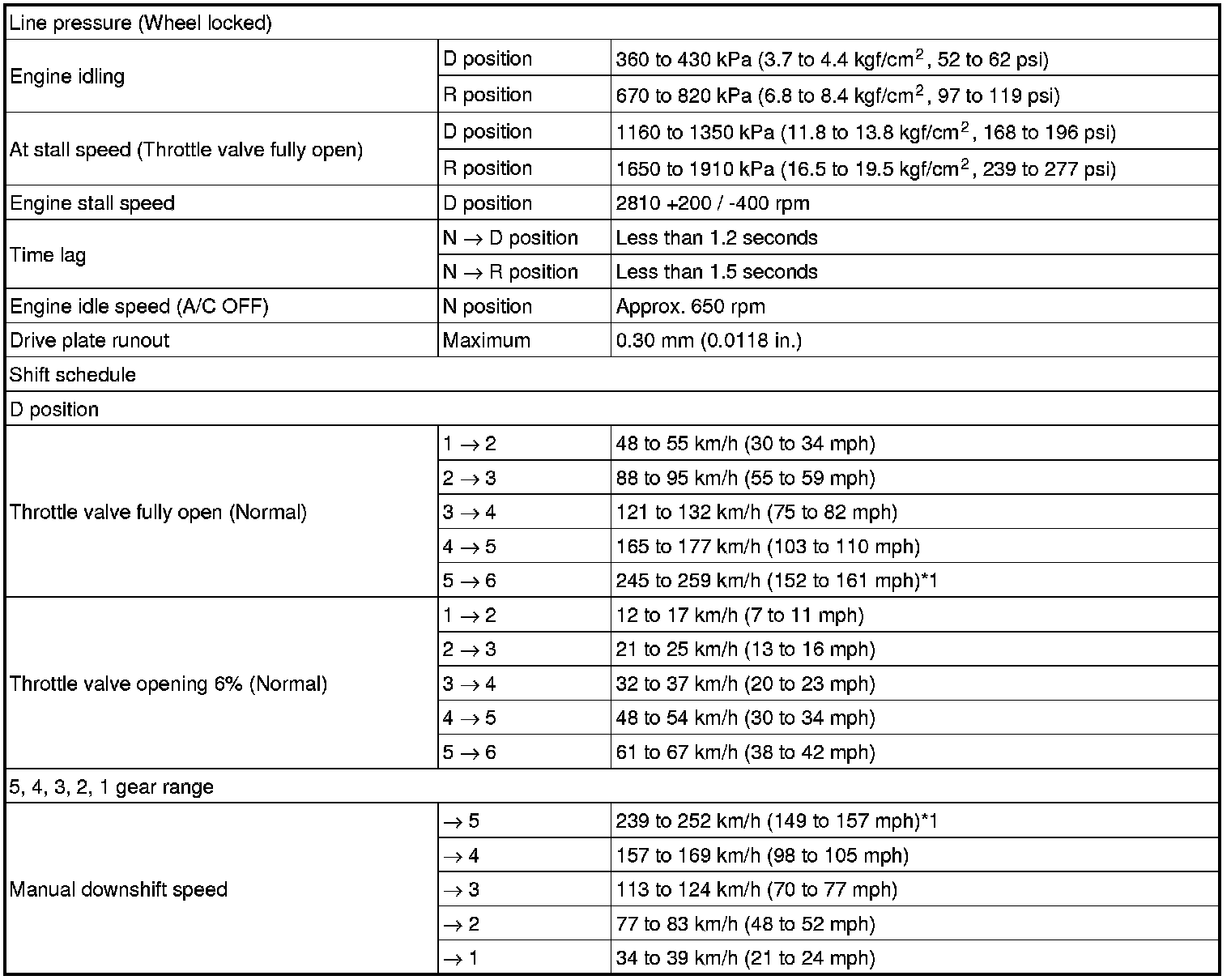 SPECIFICATIONS: U760F AUTOMATIC TRANSMISSION / TRANSAXLE: SERVICE DATA