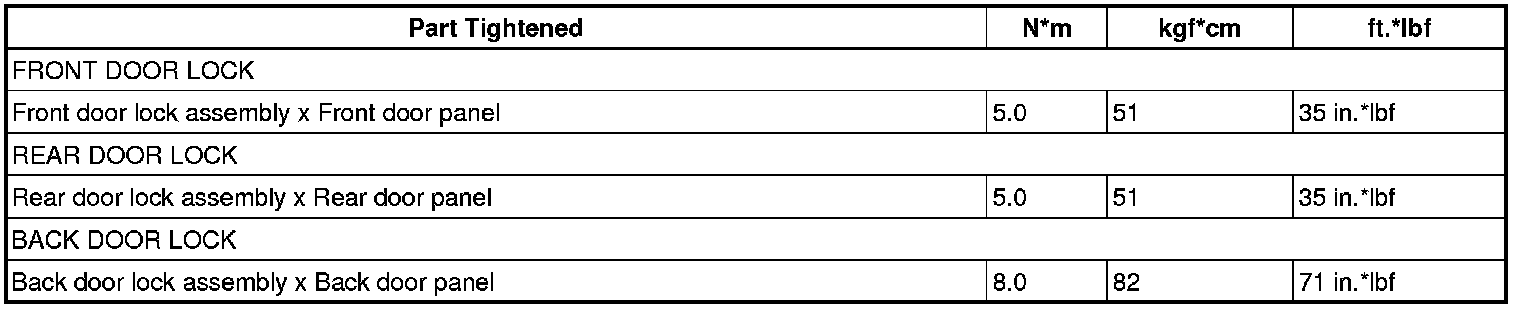 SPECIFICATIONS: DOOR LOCK: TORQUE SPECIFICATIONS