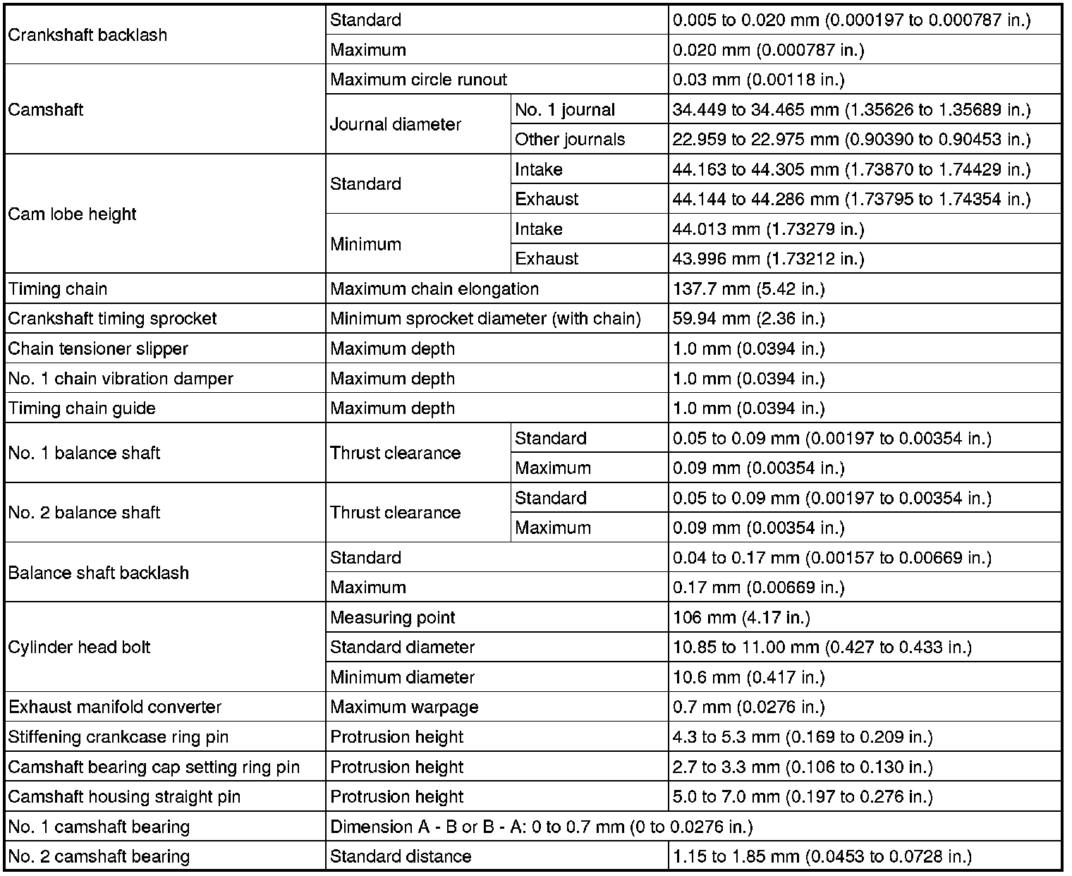 SPECIFICATIONS: 1AR-FE ENGINE MECHANICAL: SERVICE DATA
