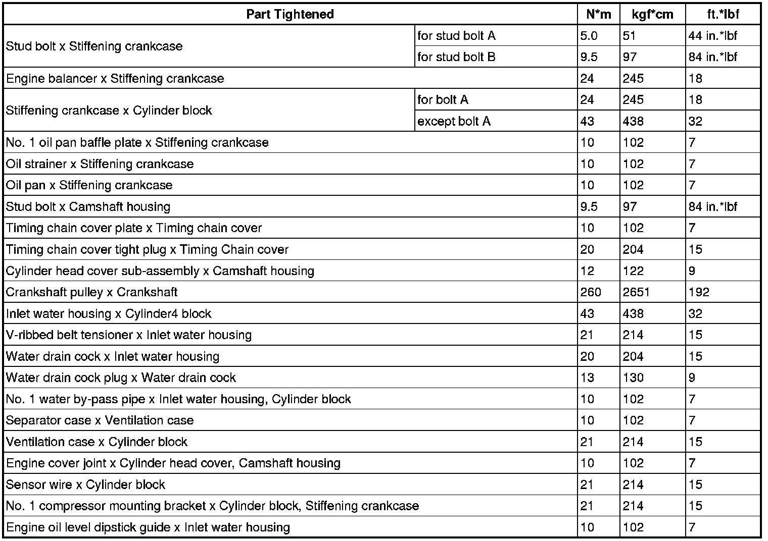 SPECIFICATIONS: 1AR-FE ENGINE MECHANICAL: TORQUE SPECIFICATIONS
