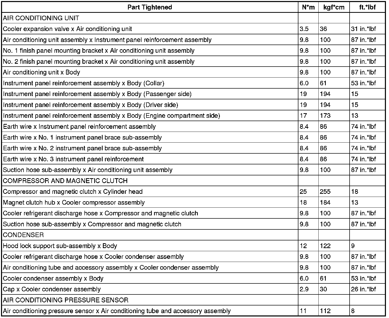 SPECIFICATIONS: HEATING / AIR CONDITIONING: TORQUE SPECIFICATIONS