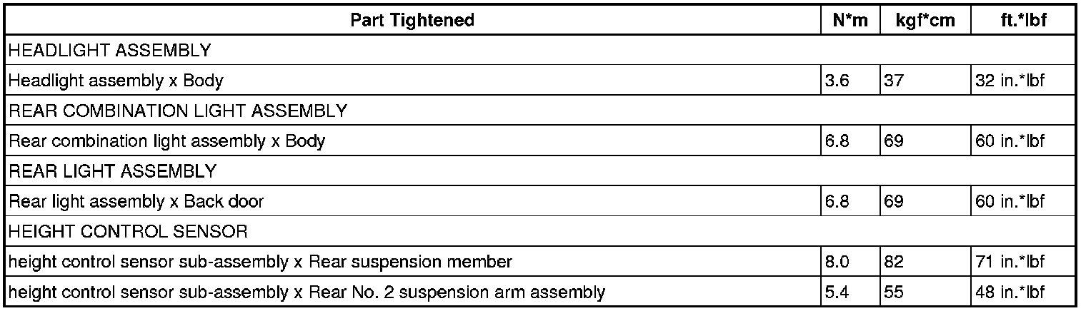SPECIFICATIONS: LIGHTING (EXT): TORQUE SPECIFICATIONS