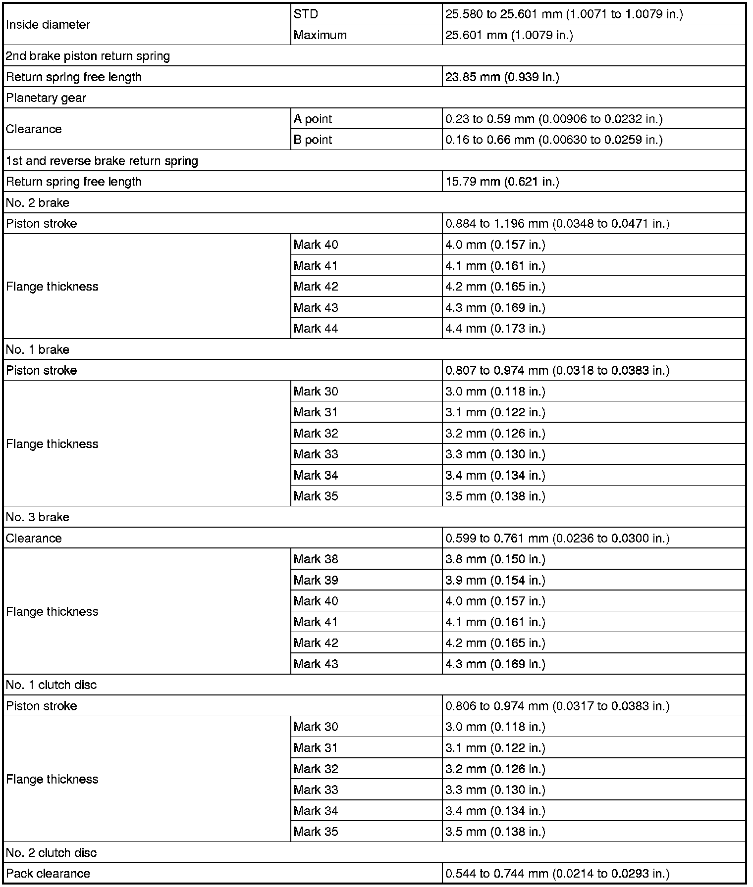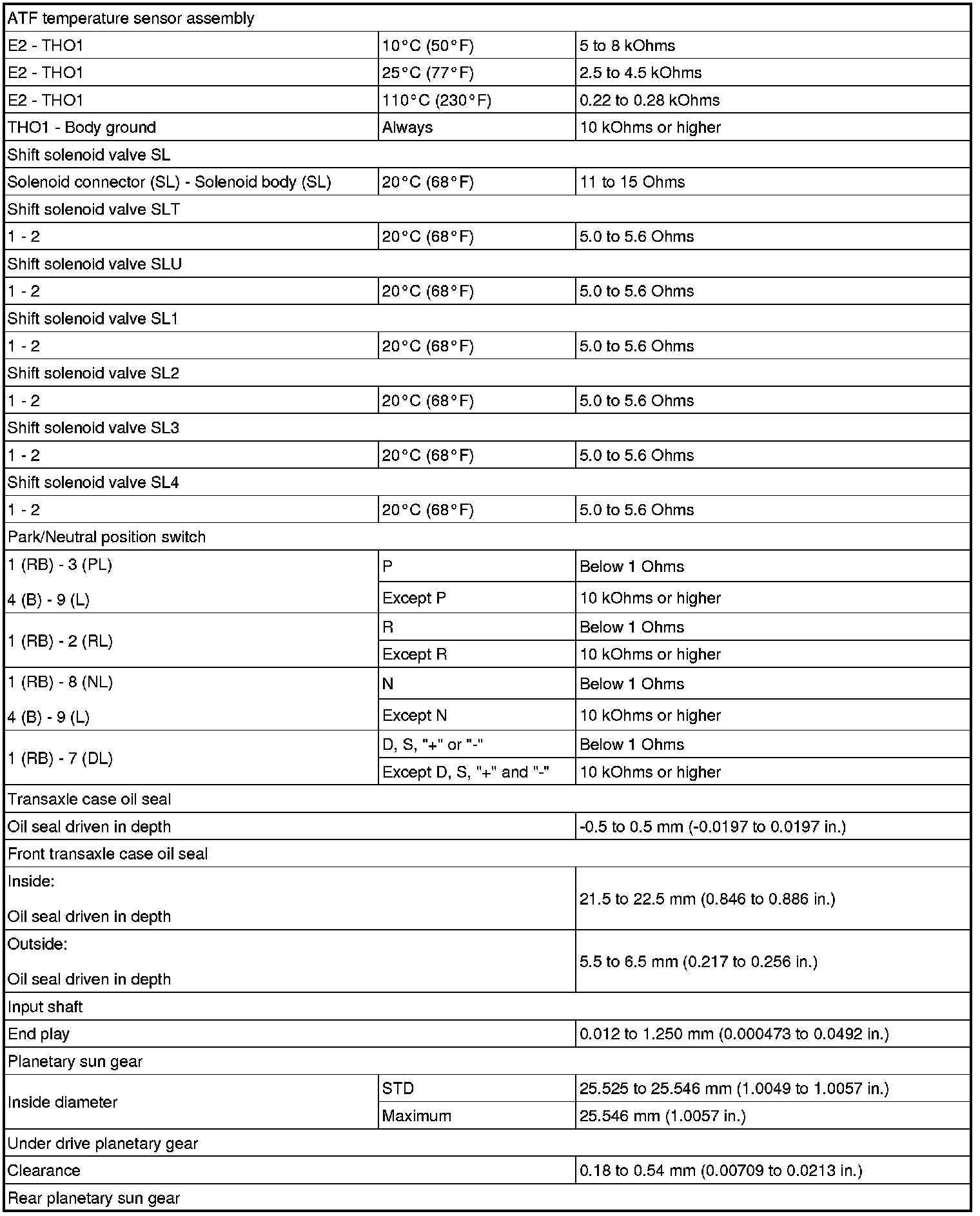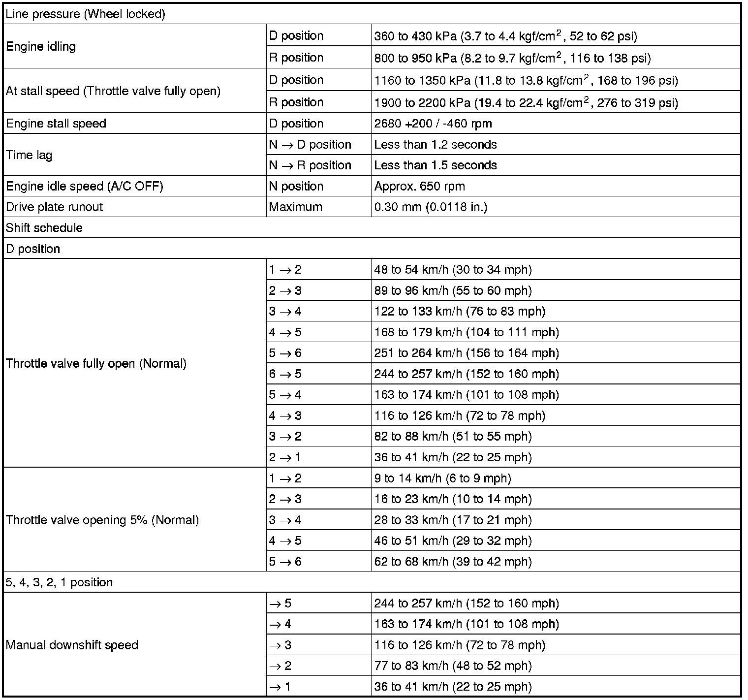 SPECIFICATIONS: U660F AUTOMATIC TRANSMISSION / TRANSAXLE: SERVICE DATA