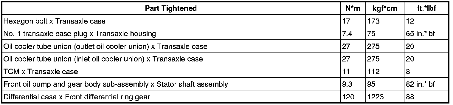 SPECIFICATIONS: U660F AUTOMATIC TRANSMISSION / TRANSAXLE: TORQUE SPECIFICATIONS