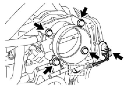 Install the throttle body and wire harness clamp stay to the intake air surge tank assembly with the 4 bolts.