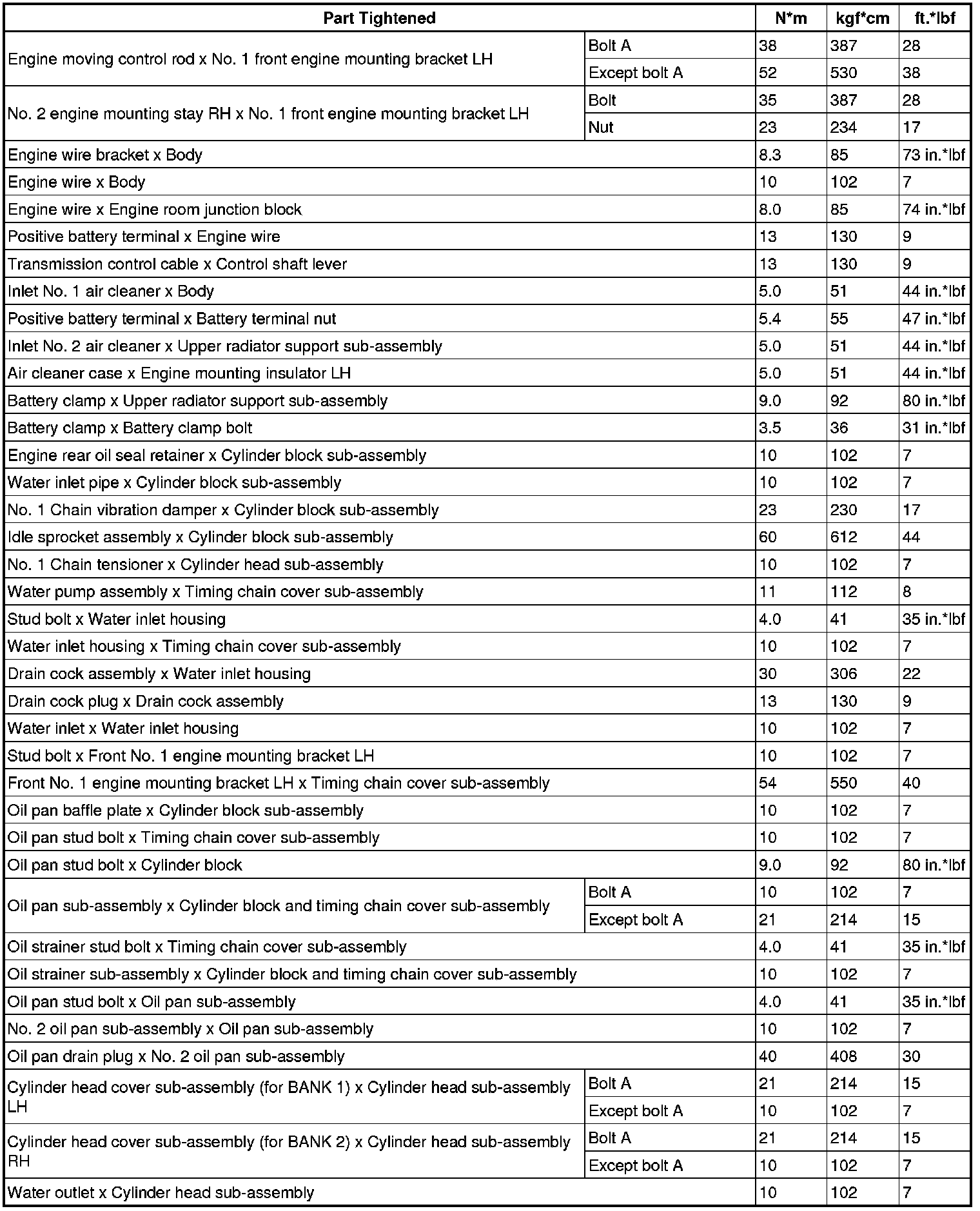 SPECIFICATIONS: 2GR-FE ENGINE MECHANICAL: TORQUE SPECIFICATIONS