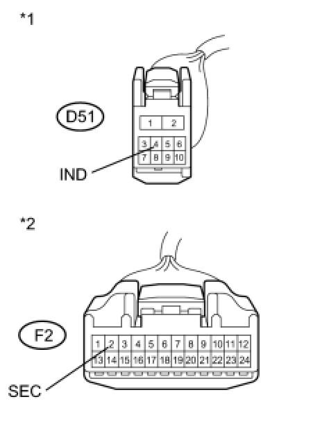 (a) Reconnect the F2 accessory meter assembly connector with the D51 ECU connector still disconnected.
