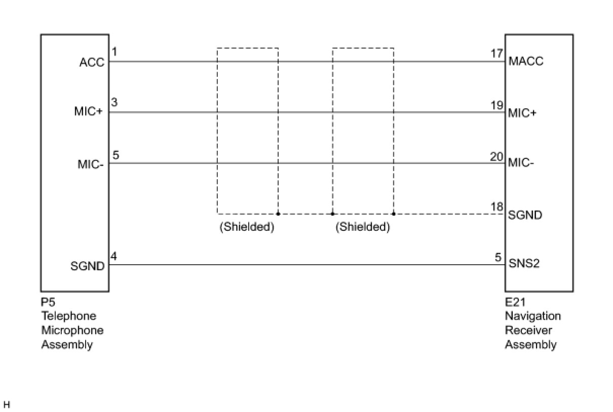 This circuit sends a microphone signal from the telephone microphone assembly to the navigation receiver assembly.