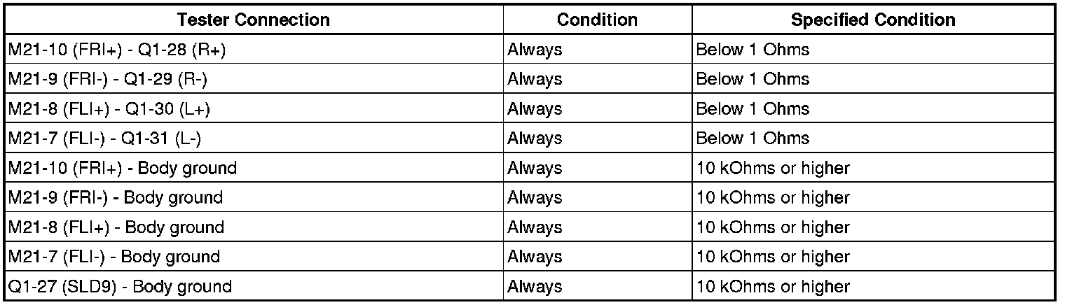 If there is an open or short in the circuit, sound cannot be heard from the speakers even if there is no malfunction in the stereo component amplifier, navigation receiver assembly or speakers.