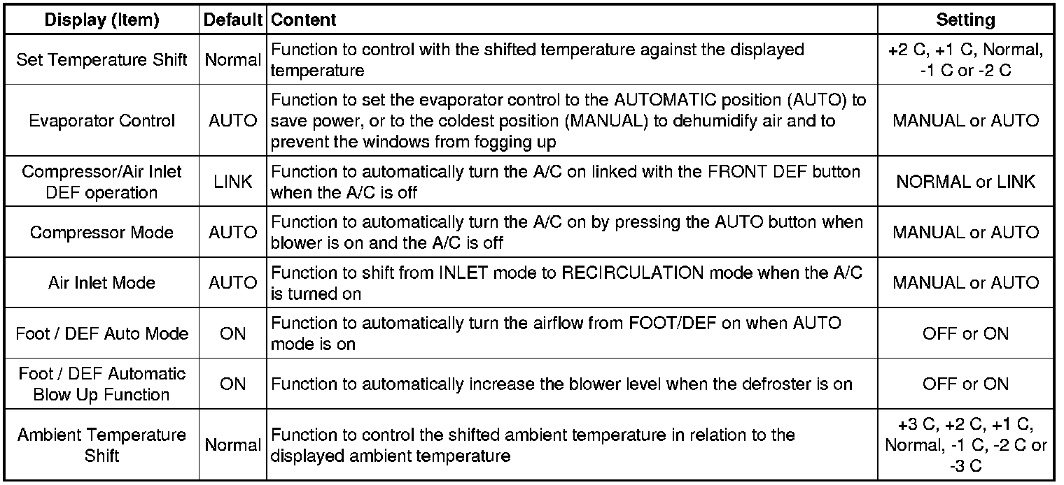 HEATING / AIR CONDITIONING: AIR CONDITIONING SYSTEM (for Automatic Air Conditioning System): CUSTOMIZE PARAMETERS