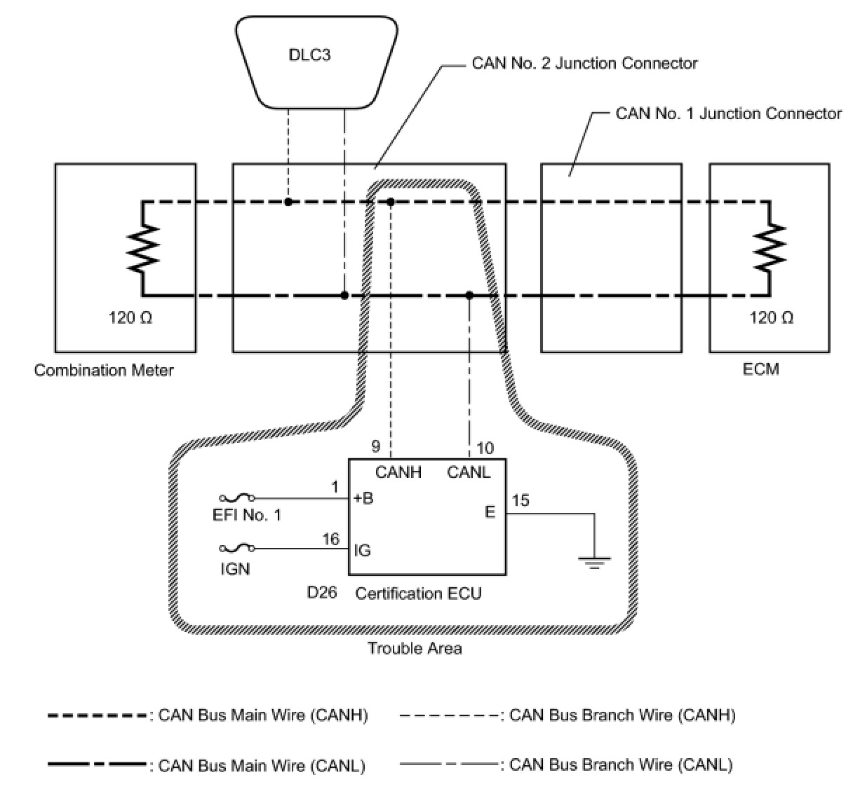 1. CHECK CAN BUS WIRE FOR DISCONNECTION (CERTIFICATION ECU BRANCH WIRE)