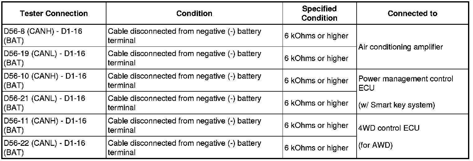 - Before measuring the resistance, leave the vehicle as is for at least 1 minute and do not operate the ignition switch, any other switches or the doors. If any doors need to be opened in order to check connectors, open the doors and leave them open.