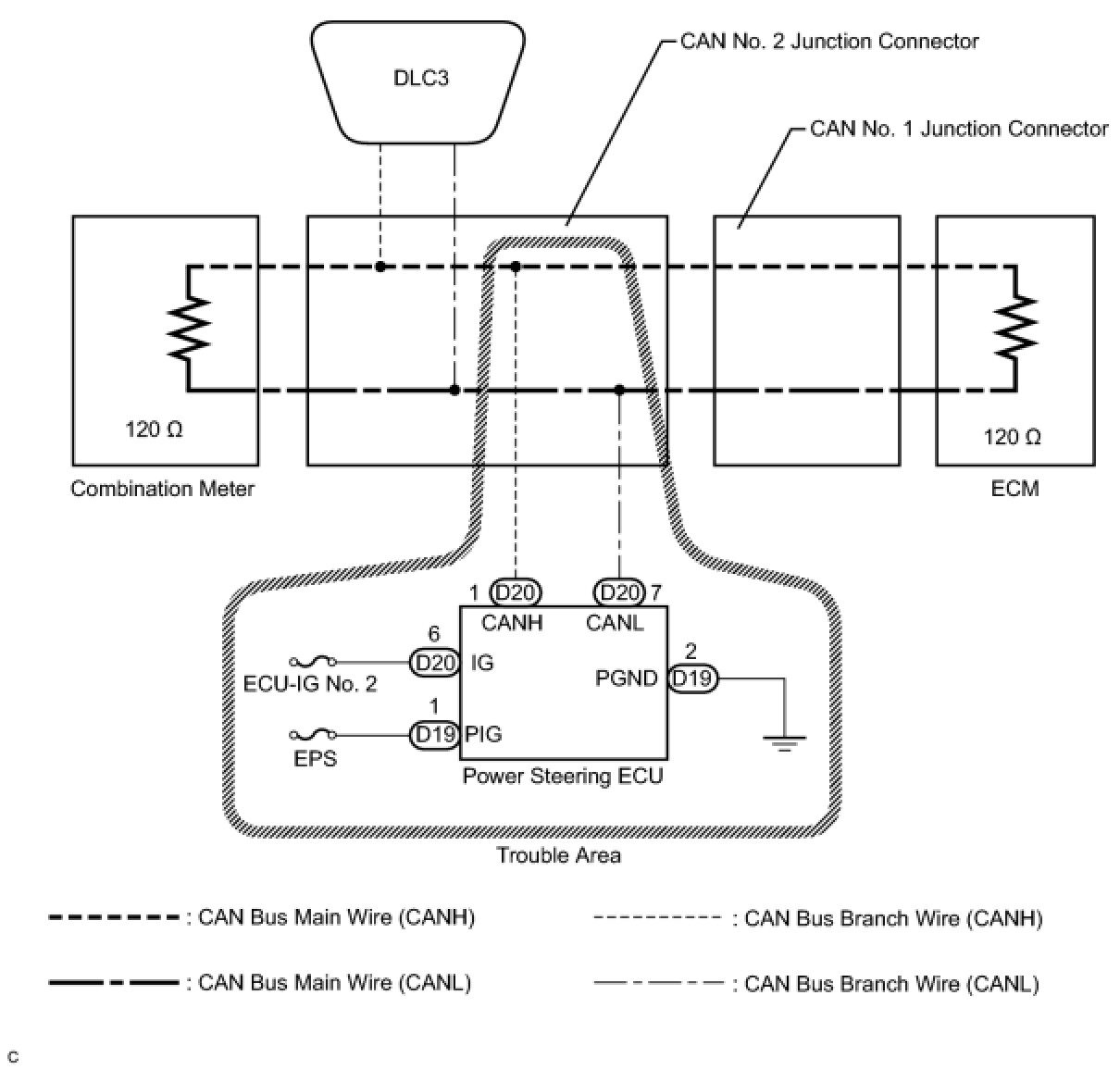 1. CHECK CAN BUS WIRE FOR DISCONNECTION (POWER STEERING ECU BRANCH WIRE)