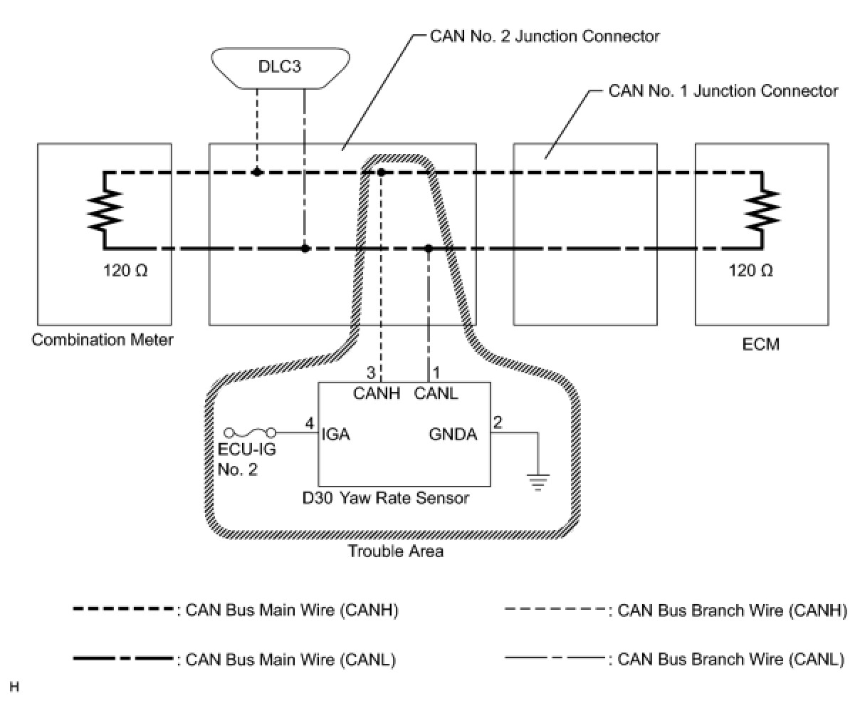 NG -- REPAIR OR REPLACE CAN BUS BRANCH WIRE OR CONNECTOR (YAW RATE AND ACCELERATION SENSOR BRANCH WIRE)