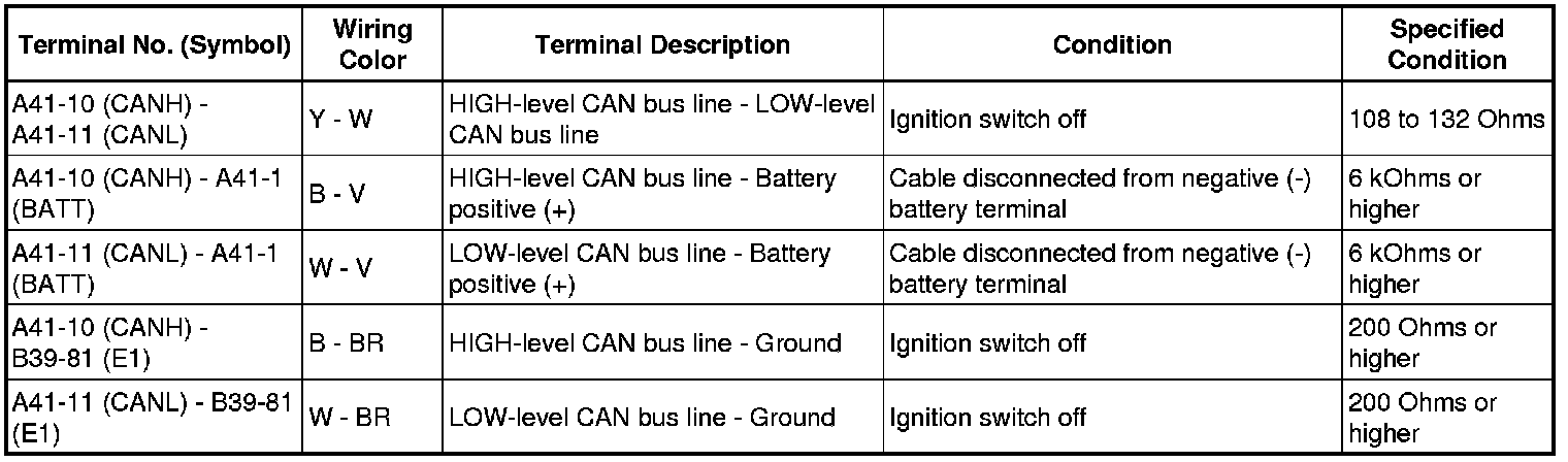- Turn the ignition switch off before measuring the resistances between CAN bus main wires and between CAN bus branch wires.