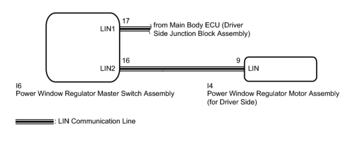 - The power window control system uses a multiplex communication system (LIN communication system). Inspect the communication function by following How to Proceed with Troubleshooting How To Proceed With Troubleshooting. Troubleshoot the power window control system after confirming that the communication system is functioning properly.