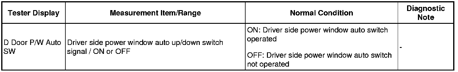 Driver Side Power Window Auto Up / Down Function does not Operate with Power Window Master Switch