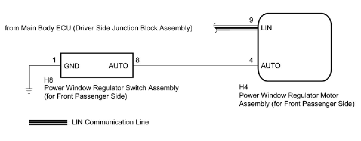 - The power window control system uses a multiplex communication system (LIN communication system). Inspect the communication function by following How to Proceed with Troubleshooting How To Proceed With Troubleshooting. Troubleshoot the power window control system after confirming that the communication system is functioning properly.