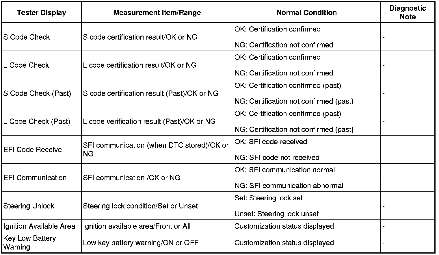 THEFT DETERRENT / KEYLESS ENTRY: SMART KEY SYSTEM (for Start Function): DATA LIST / ACTIVE TEST