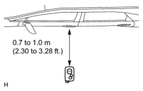 (b) Bring the key near the driver door outside handle assembly, and perform a front driver door entry lock and unlock operation check.