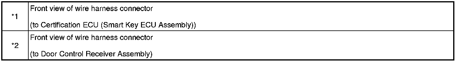 When the entry door lock and unlock functions and wireless door lock and unlock functions do not operate, radio wave interference, or a malfunction in the key or signal circuit between the door control receiver assembly and certification ECU (smart key ECU assembly) is suspected. The signal circuit is shared by the entry function and wireless door lock function.