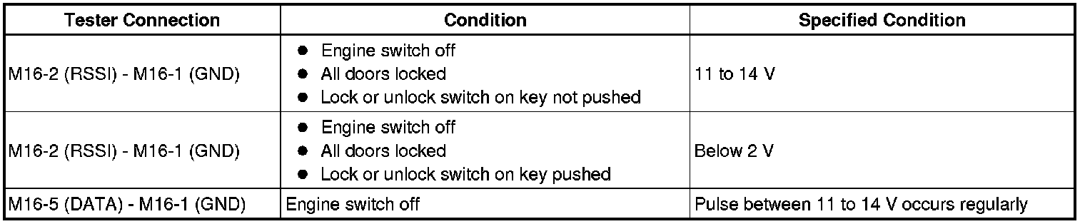 14. INSPECT DOOR CONTROL RECEIVER ASSEMBLY (DOOR CONTROL RECEIVER SIGNAL OUTPUT)