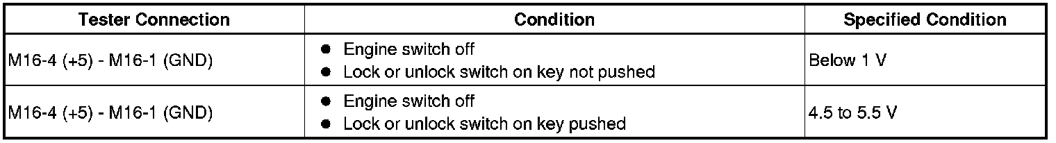 HINT: When measuring the battery voltage, while operating the lock switch of a door outside handle assembly, bring the key within the entry operating range to perform the measurement. For the entry operating range, refer to System Description Smart Key System (for Entry Function).