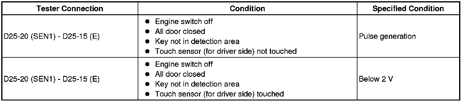 (c) Measure the voltage and check for pulses according to the value(s) in the table below.