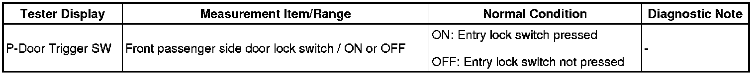 Front Passenger Side Door Entry Lock Function Does Not Operate