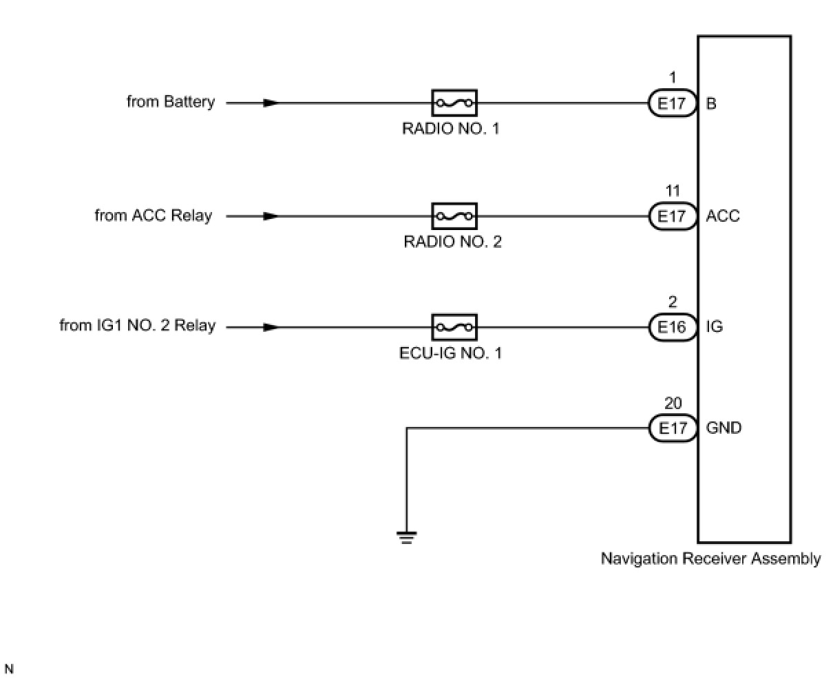 NAVIGATION / MULTI INFO DISPLAY: NAVIGATION SYSTEM: Navigation Receiver Assembly Power Source Circuit