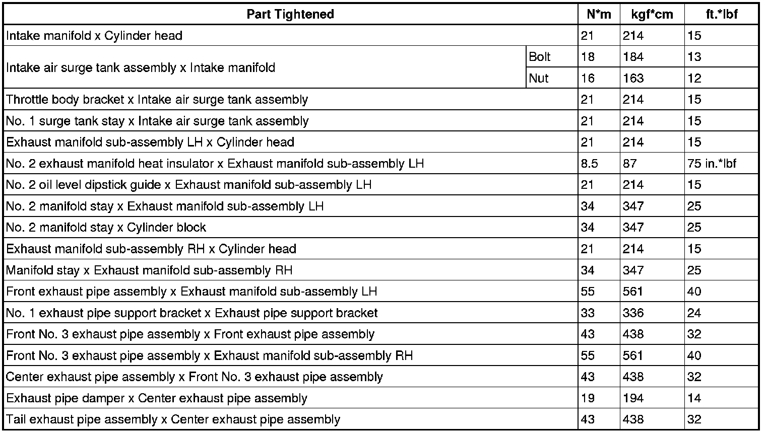 SPECIFICATIONS: 2GR-FE INTAKE / EXHAUST: TORQUE SPECIFICATIONS